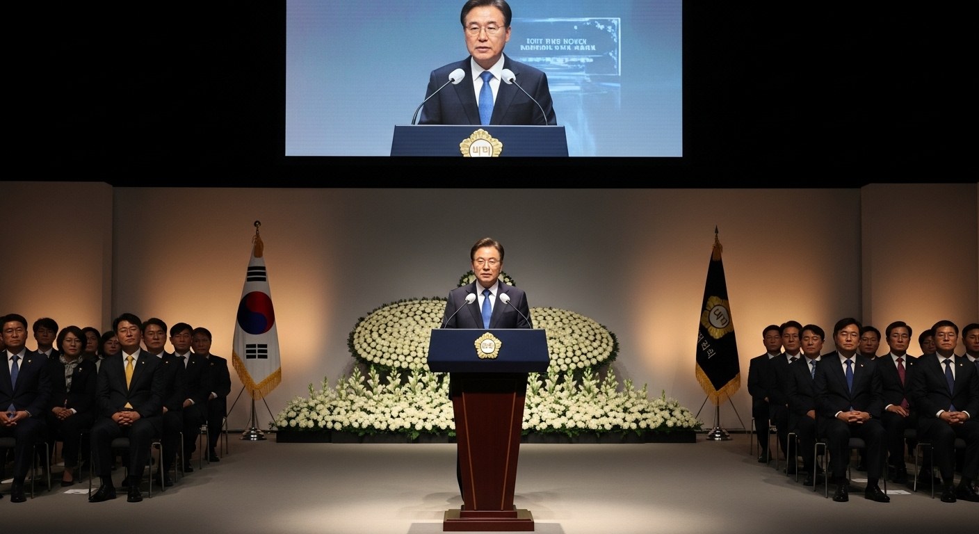 추모식은 고요하게 진행됐다. 잔잔한 음악이 흐르고, 국화꽃 향이 바람에 실려 흘러갔다. 김민석 국무총리가 단상 위에 섰다. 마이크를 두 손으로 잡은 그의 목소리가 울렸다.